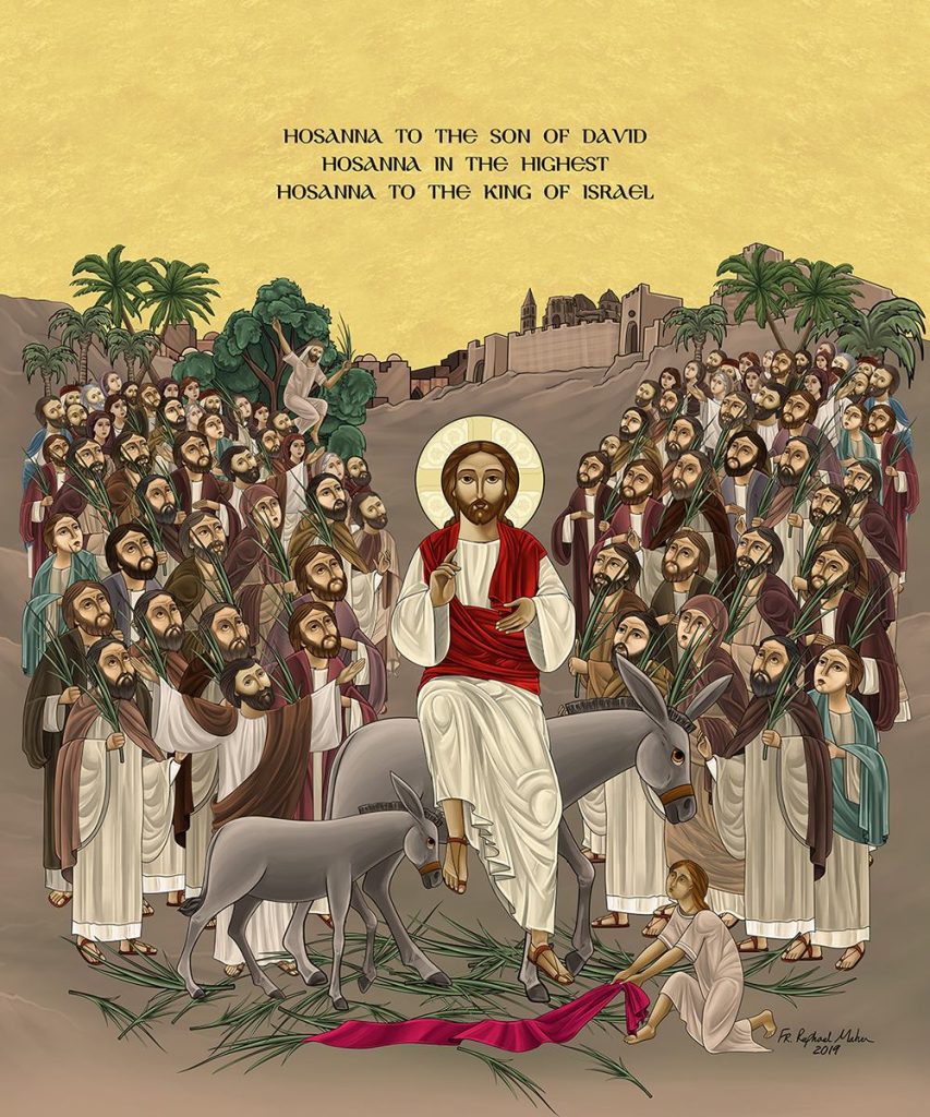 The next day, a great multitude that had come to the feast, when they heard that Jesus was coming to Jerusalem, took branches of palm trees and went out to meet Him, and cried out: “Hosanna! ‘Blessed is He who comes in the name of the Lord!’ The King of Israel!”